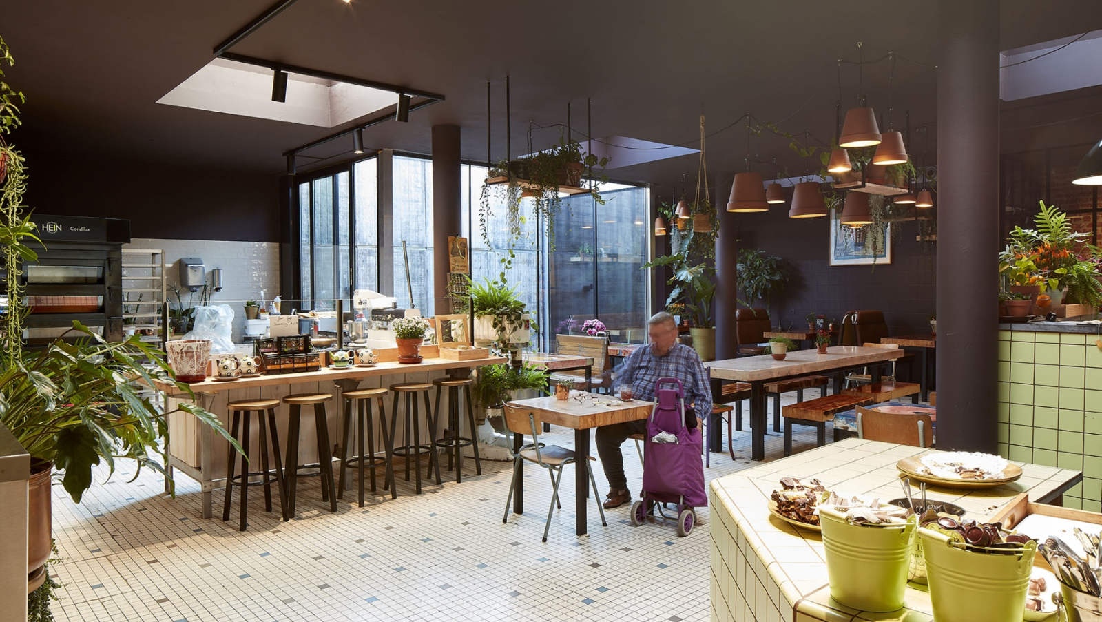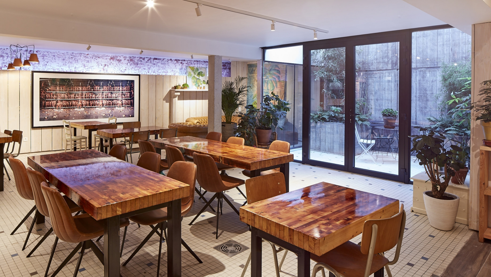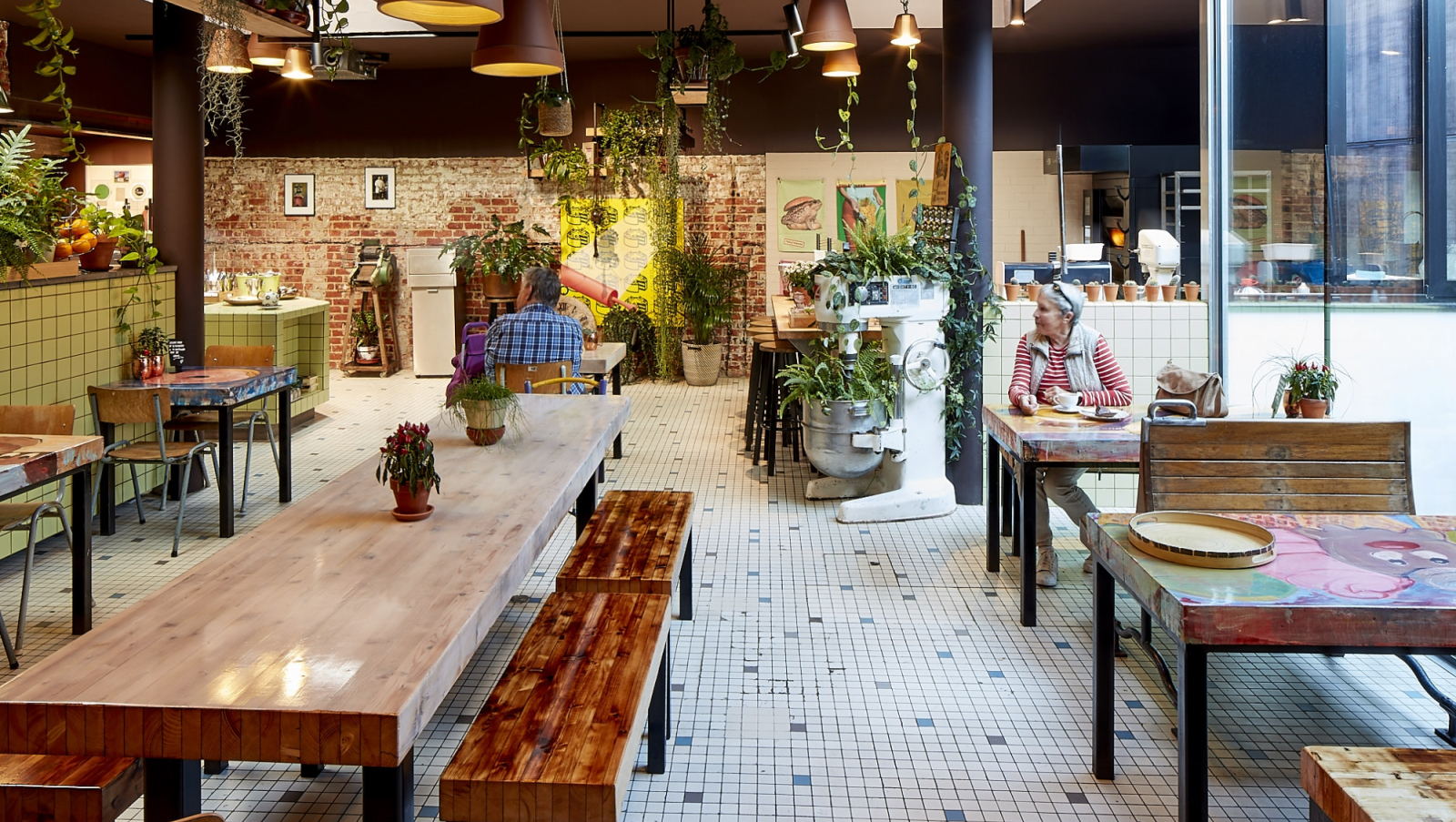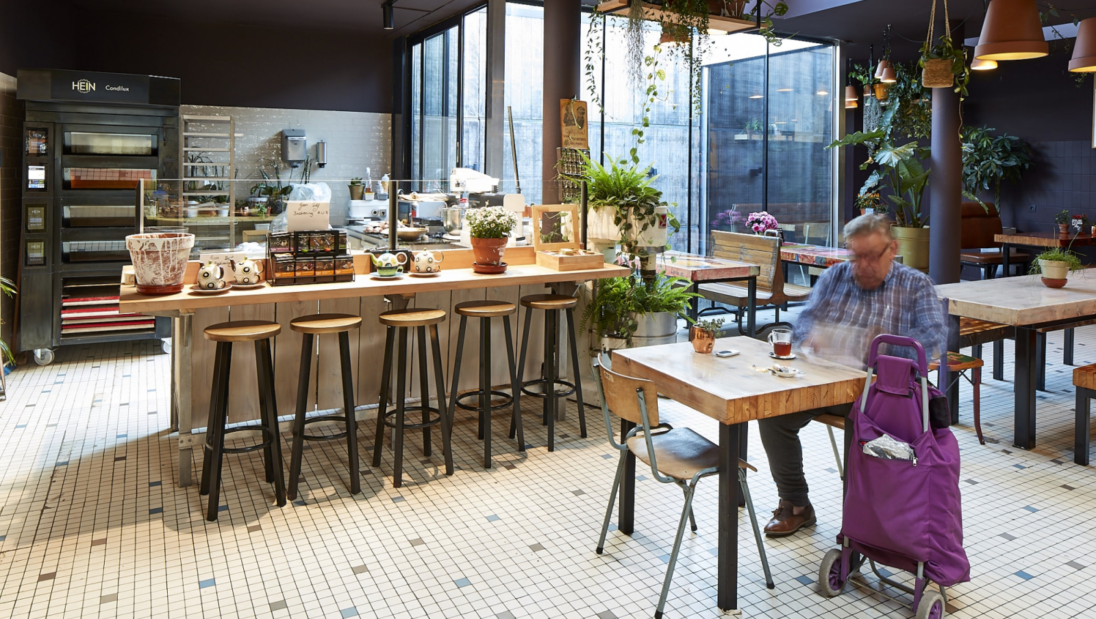 Bijkomende kregen we de opdracht een zitruimte te ontwerpen om het serveren van ontbijt en lunch voor de consumenten mogelijk te maken. Doormiddel van het toevoegen van een patio overheen twee verdiepingen werd de kelder eveneens een bruikbare ruimte.