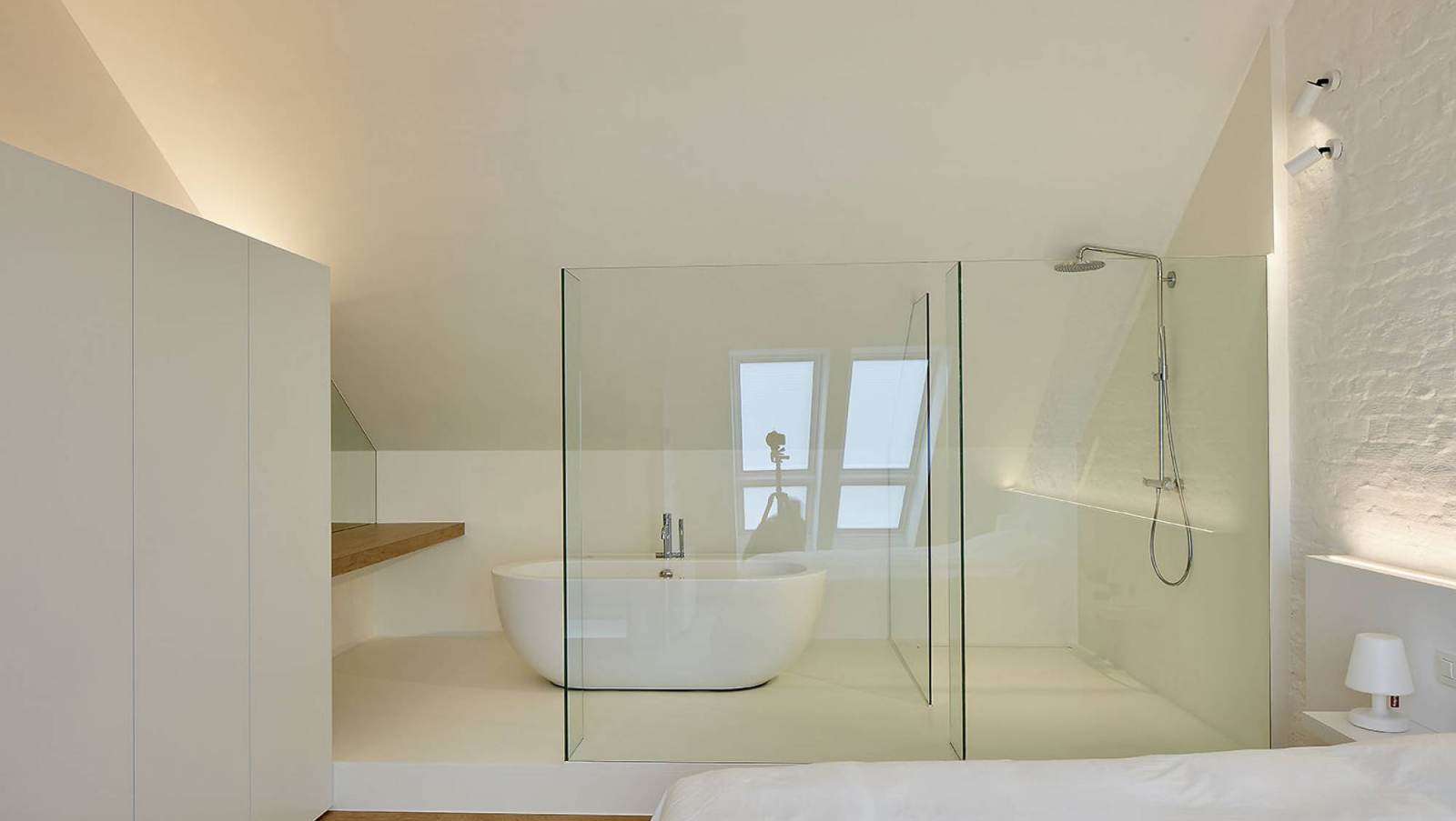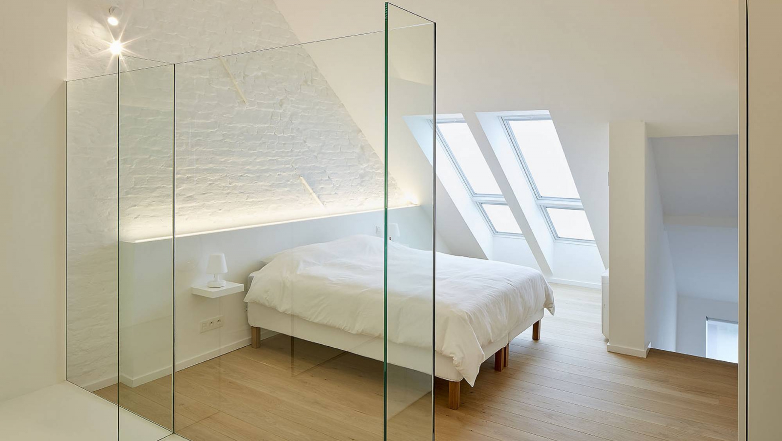 Het interieur kenmerkt ruimtelijkheid met overdadige lichtinval en bevat ingewerkt meubilair.