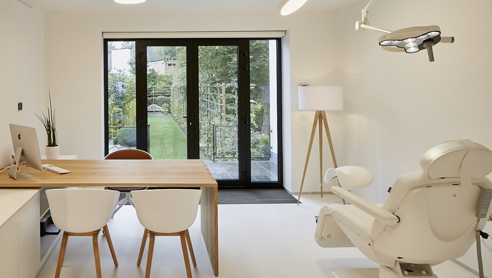 Voor de grondige verbouwing van een bestaand kantoorgebouw naar een plastische chirurgie met bovenliggende woonstudio werd gestreefd naar een klinische uitstraling met warme sfeer. Een paradoxale beschrijving waardoor de lat hoog lag betreft technische en interieurafwerkingen.