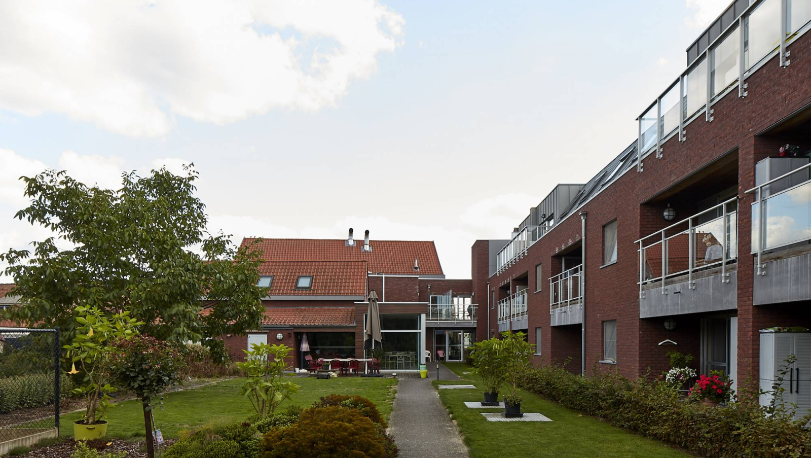 Alles begon met de renovatie van een beschermde hoeve met aandacht voor het gekozen materiaalgebruik en het oprichten van een nieuwbouw van 25 assistentiewoningen. De nieuwbouw werd U-vormig geschakeld met de bestaande boerderij om zo een binnentuin te creëren. De verbinding met de boerderij, waarin de meeste gemeenschappelijke functies zijn, bestaat uit een lichte constructie met veel glas.